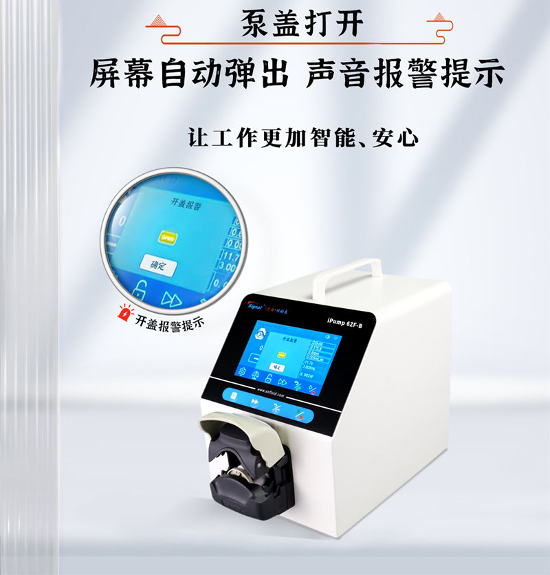 當泵蓋打開時,ipump4ZF-B+FT15會自動彈出屏幕并進行聲音報警提示。這一設(shè)計,旨在提醒用戶注意泵蓋狀態(tài),保證使用過程的安全性。不用再擔心因忘記關(guān)閉泵蓋而導(dǎo)致的意外情況。